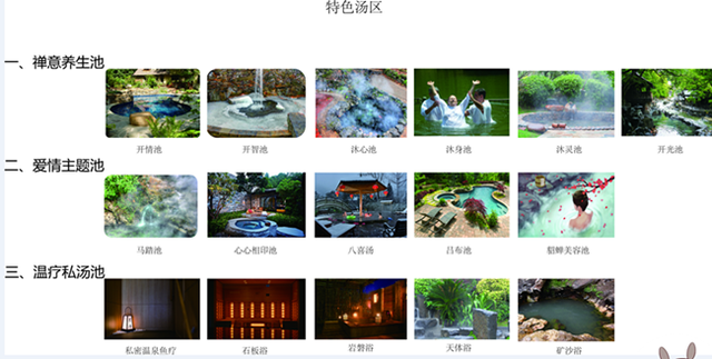 为了迎合现在度假市场的需要,把现已经建好的4栋温泉别墅分别予以不同的主题,分别为:青春浪漫主题别墅(针对现下的年轻人)、禅意养生主题别墅(针对中老年人)、激情岁月主题别墅(针对同学聚会)、康养温疗主题别墅(即主要是做温泉康养之用,满足高端宾客的健康需求,并配置相应的温泉康养专业人员)。( 邢改云)