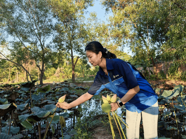 這份情誼在時光裏悄然生長。姐姐的女兒肯洽娜,總舉著手機用翻譯軟件說「姐姐的頭發像瀑布」,還把我教她的中文童謠唱給同學聽。姐姐更熱情,邀我去她家院子摘金黃的芒果、采飽滿的蓮蓬,我則拿出從國內帶來的薯片、辣條與她們分享。肯洽娜嘗著辣到呼氣的辣條,眼睛卻笑成月牙,嚷著:「中國魔法。」