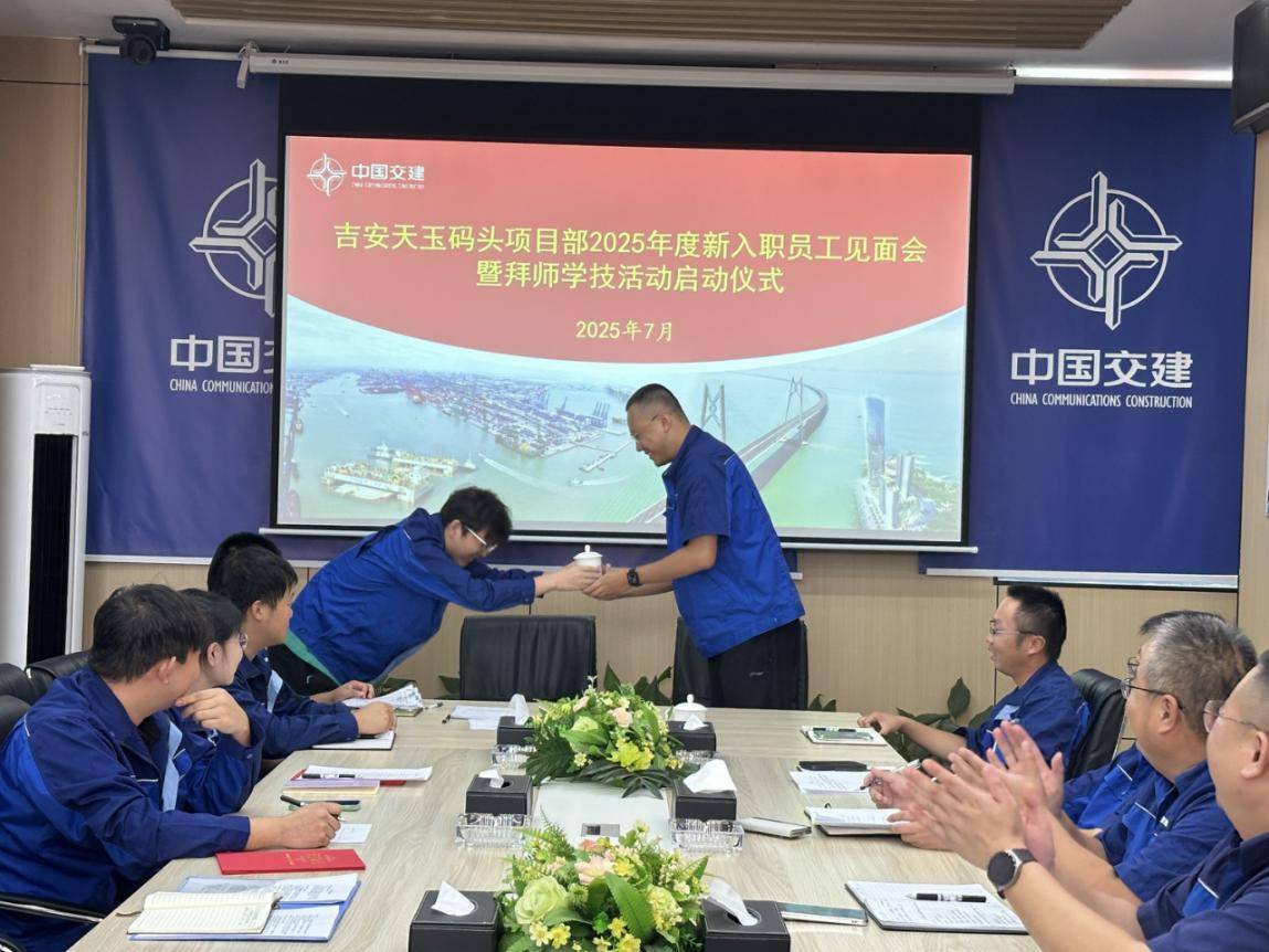 为帮助新员工快速融入团队、夯实成长根基,推动项目人才梯队建设持续升级,吉安天玉码头项目部隆重举行2025年度新入职员工见面会暨拜师学技启动仪式。项目领导班子、各部门主管、2024年度优秀师徒代表及2025年新入职员工齐聚一堂,以表彰先进树标杆、师徒结对传帮带的形式,为新员工开启职业新征程注入强劲动力。