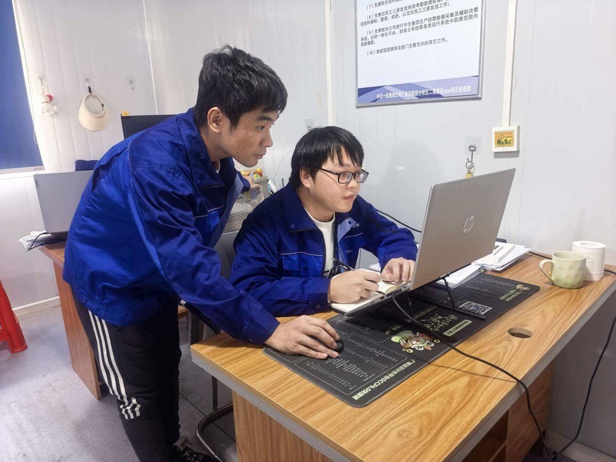 白天,他是穿梭各方的“攻坚手”。不是在与各个业主协调竣工结算,就是在和广西交院PPP项目财评审计据理力争;既要厘清分包结算的争议,又要抽空指导徒弟计量计价。他的办公室,电话铃声与敲门声此起彼伏,如同战场的鼓点。然而,真正的“修炼”在夜晚。当项目部归于寂静,他桌前的灯总是亮到最后,书页翻动与笔尖划过纸张的声音,是他与时间赛跑的证明。高强度连轴转下,他不仅将千头万绪梳理得井井有条,更始终保持着饱满的精神状态,堪称“忙而不乱,游刃有余”。
