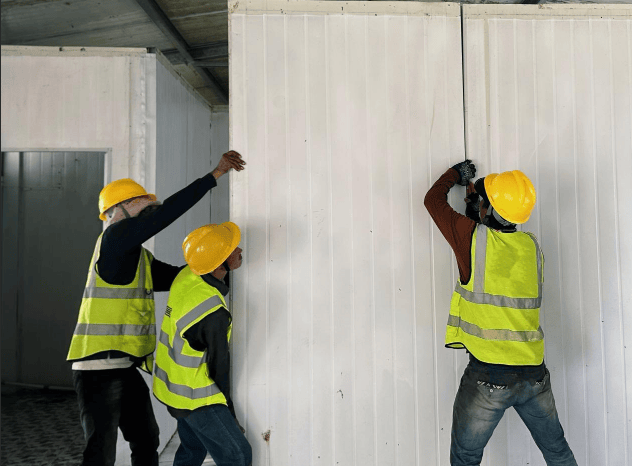 如今,我又要启程前往茶胶项目。拆板房时,韩调反复强调:“拆容易安装难,细节藏良心!慢着点,每块板都要仔细拆,新项目还能用。”到了安装环节,因为当地配件和技术有限,这群“蓝衣工作者”还总打电话回国内,咨询专业安装团队的意见,挂电话后便交代大家:“按专家建议来,宁可慢一点,也要搭得牢固安全,让大家住得放心。”