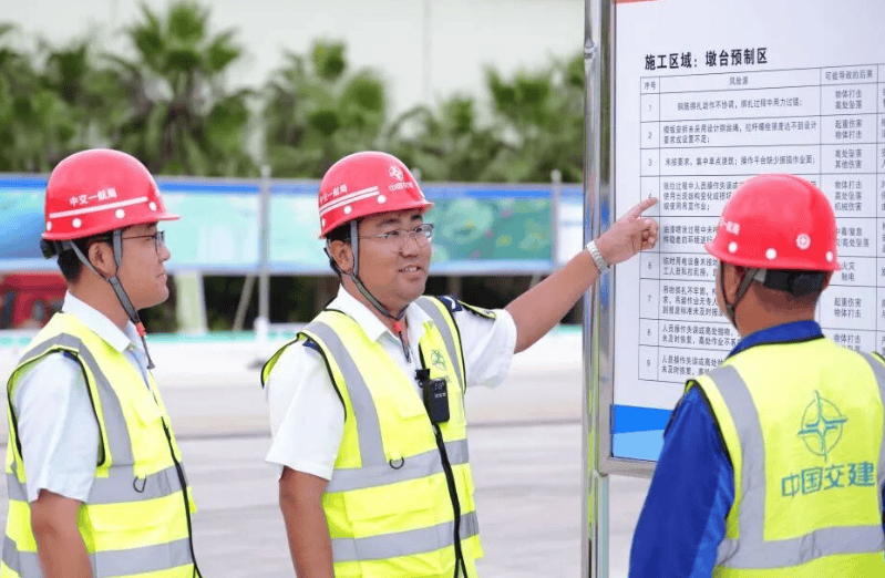 夜晚的海面平静无波,海上氤氲着一层薄薄的雾。中交一航局厦金大桥(厦门段)项目墩台预制厂内,一个高大的身影穿梭在现场的大型机械设备与施工人员之间,那是正在进行夜间施工巡检的安全总监王鹏波,他是施工人员口中的安全“家长”。自从预制厂完成整体建设,正式投入墩台构件的生产后,王鹏波便一日比一日忙碌了起来。夜间巡检完回到宿舍睡上一觉,天刚蒙蒙亮,就又“出发”了。