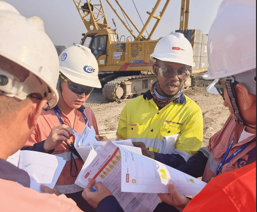 天寶決定打破這一局面,他主動找到業主方安全專家,邀請對方參與項目早班會,自己則化身「翻譯官」,開啟了現場「安全課堂」:「穿好長袖,防止蚊蟲叮咬,避免感染瘧疾」「在大門外與村莊交接路口,安排一名旗手指揮交通」「降水井蓋,可以用鋼筋篦子製作」…… 這些通俗易懂的指令,讓各班組吃下了 「定心丸」,迅速開展整改工作。