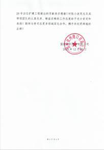 中交一航局优质履约获业主感谢信