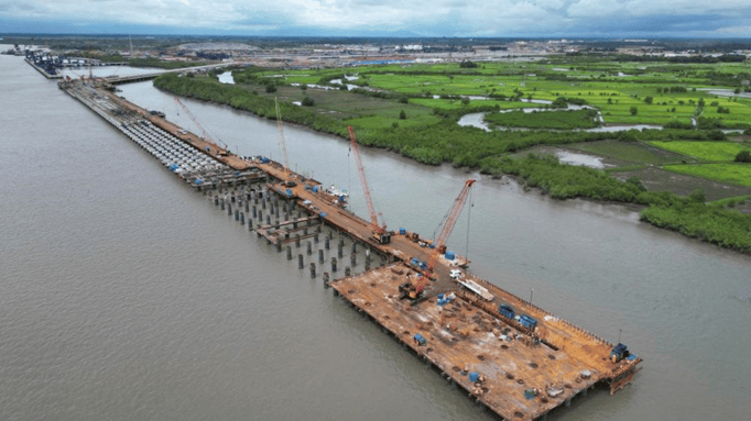 近日,由中國港灣承建、中交一航局五公司負責施工的幾內亞西芒杜鐵礦配套港口項目EPC1標段碼頭工程建設進展順利,多項關鍵節點較計劃提前完成,現場已全面掀起施工高潮。